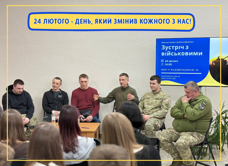 НОВИНИ ТИЖДЕНЬ ДИТЯЧОЇ ТА ЮНАЦЬКОЇ КНИГИ Детальніше… тренінг із графічного редактора “Canva” для бібліотекарів Детальніше… зустріч за кавою з волонтеркою Світланою Москвич Детальніше… Зустріч з військовими Детальніше… Більше новин…